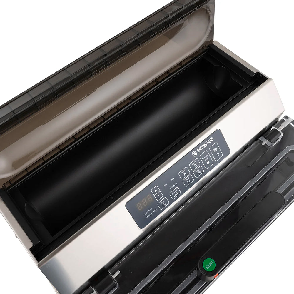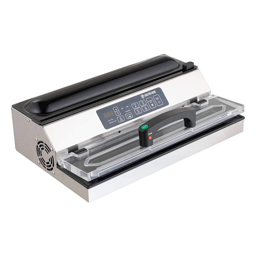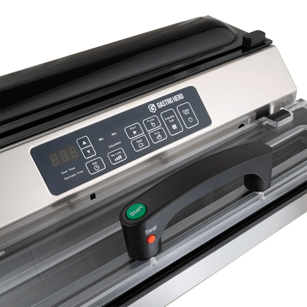 Nos appareils de mise sous vide se distinguent par leur construction robuste en acier inoxydable, qui garantit non seulement une longue durée de vie, mais qui fait aussi une figure élégante dans chaque cuisine. Grâce à la fonction de mise sous vide rapide , vous gagnez du temps et pouvez emballer vos aliments en toute sécurité en un tour de main.Aperçu des avantages du produit :
