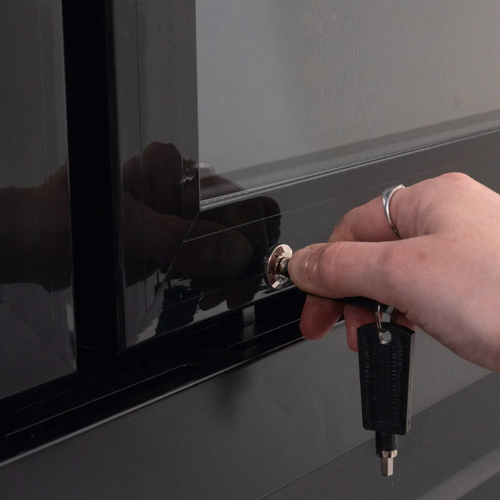 - 3 portes battantes verrouillables, à fermeture automatique, double vitrage