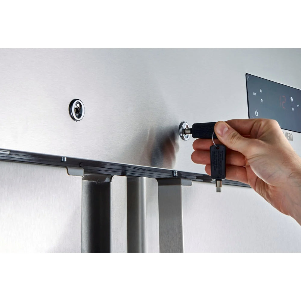 - Fiabilité garantie : portes auto-fermantes avec serrure et thermostat numérique.