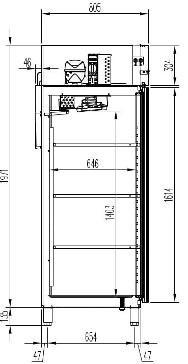 - Refroidissement constant dans l'ensemble de l'espace réfrigéré grâce à l'arrêt automatique du ventilateur évaporateur lors de l'ouverture des portes