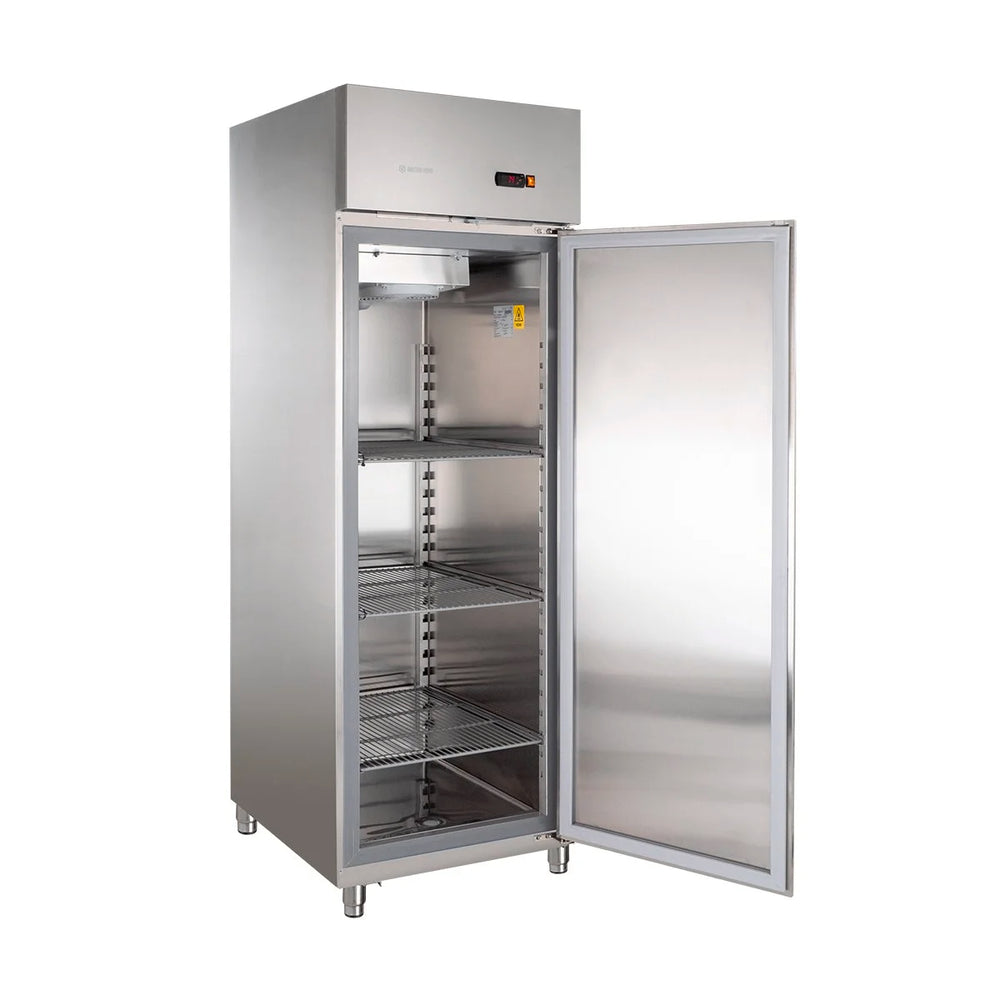 Avec le réfrigérateur inox Profi 700 GN 2/1, nous vous proposons un produit de grande qualité fabriqué en Europe à un prix imbattable. Ce réfrigérateur en acier inoxydable vous convaincra par sa grande qualité, sa longévité particulièrement élevée, ses fonctionnalités uniques et son design moderne. Cette armoire réfrigérée ne fait pas partie de nos produits les mieux vendus sans raison. Le système de mesure de la température permet d'éviter une intervention trop fréquente du groupe frigorifique. Cet appareil est donc particulièrement peu énergivore et préserve l'environnement. Dès que les produits ont atteint la température requise à l'intérieur, la consommation d'énergie baisse considérablement.