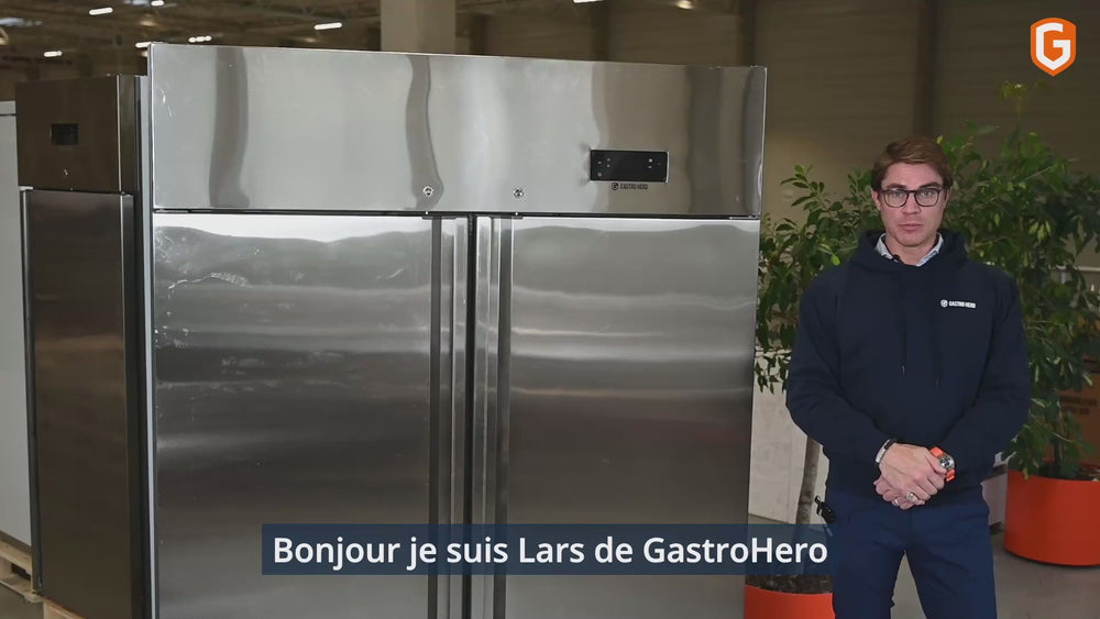 Armoire réfrigérée professionnelle ECO 1400 GN 2/1 monobloc, volume de réfrigération 1350 litres, 6 grilles réglables, construction robuste, acier inoxydable