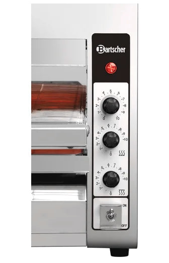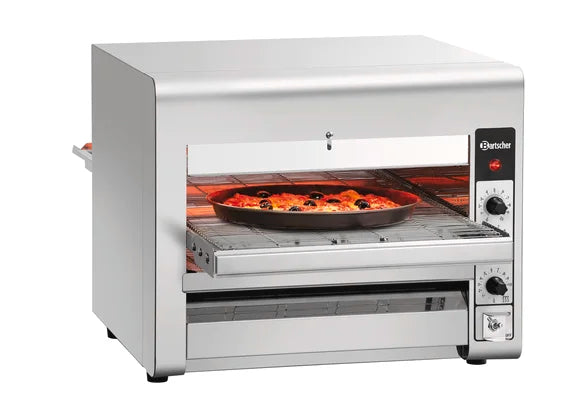 Pizzas et snacks sur tapis roulant : avec le four à pizza à convoyeur, vous réussissez vos pizzas, vos baguettes garnies et vos toasts. Le réglage individuel de la vitesse de la bande de convoyage permet d'obtenir des préparations croustillantes et délicieuses.