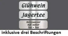 - Compris : 3 inscriptions : Glühwein, Jagertee, Heisswasser - hot water - Tee