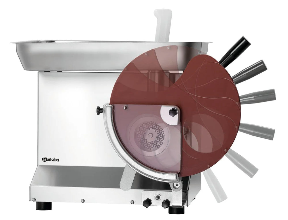 Parfaitement formés, facilement, rapidement et fraîchement préparés – Avec la presse à hamburger FW200 combinée avec le hachoir à viande FW200, les « hamburgerpatties » réussissent en un tour de main.