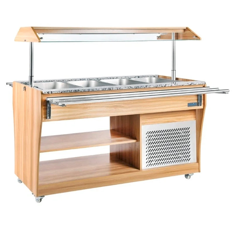 - Comptoir réfrigéré sur roulettes : Se laisse facilement manœuvrer, de sorte qu'il est facile de changer de position de buffet