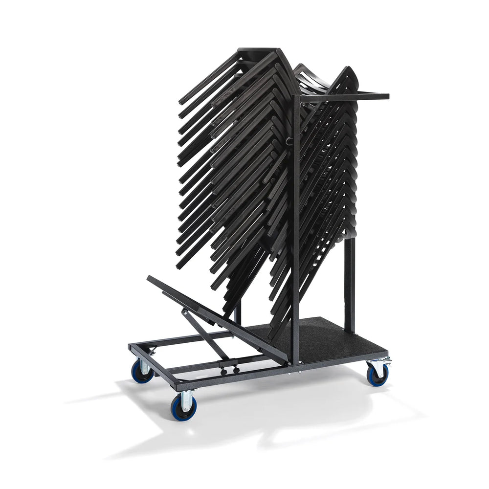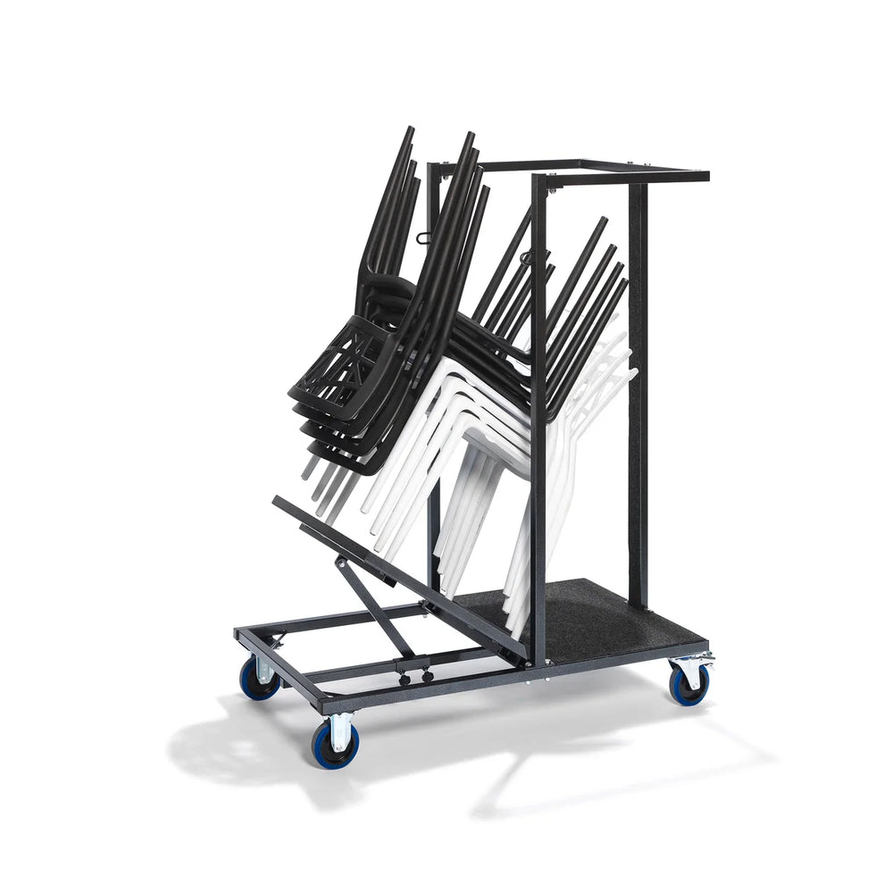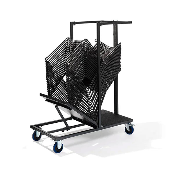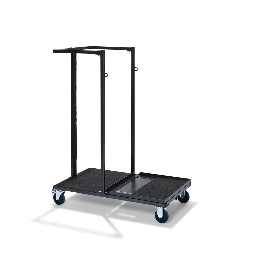 Le chariot Uni Stack est un chariot universel unique en son genre. Toutes les chaises empilables tiennent sur ce chariot de transport. Une plaque réglable étant intégrée, le chariot peut être déplacé dans n'importe quelle position souhaitée. Le chariot de transport complet est recouvert de feutre afin que les chaises ne soient pas endommagées pendant le transport. Il y a aussi deux yeux pour assurer une sécurité supplémentaire aux chaises. Le chariot est équipé de roues Torwegge de 125 mm avec 2 roues fixes et 2 roues pivotantes, ce qui le rend facile à diriger.