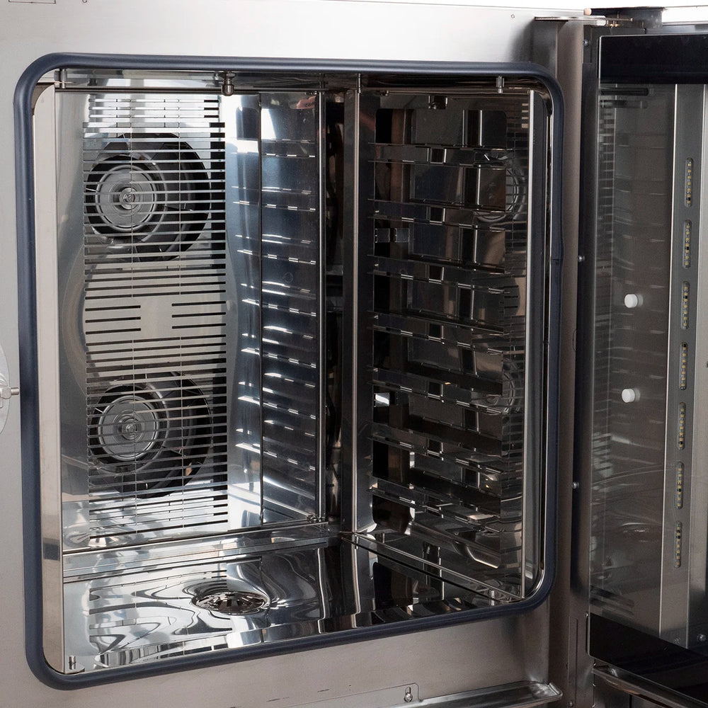 Les fours combinés haut de gamme de Tecnoeka séduisent par leur design solide et raffiné et leur technologie parfaite. L'utilisation est simple et conviviale grâce à un panneau de commande pratique et à la possibilité de mémoriser jusqu'à 100 recettes. Le four est équipé des systèmes brevetés Airflowlogic et Humilogic de Tecnoeka.