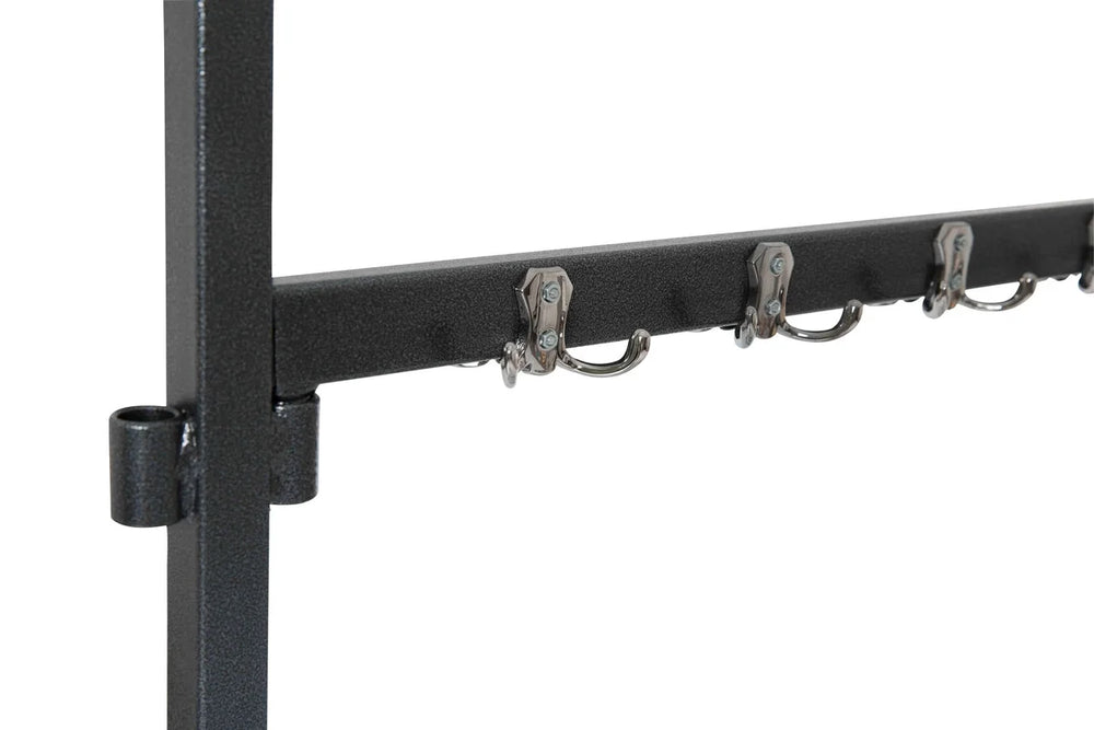 Feros Porte-manteaux grand avec 104 crochets, en acier noir, sur roulettes, extensible