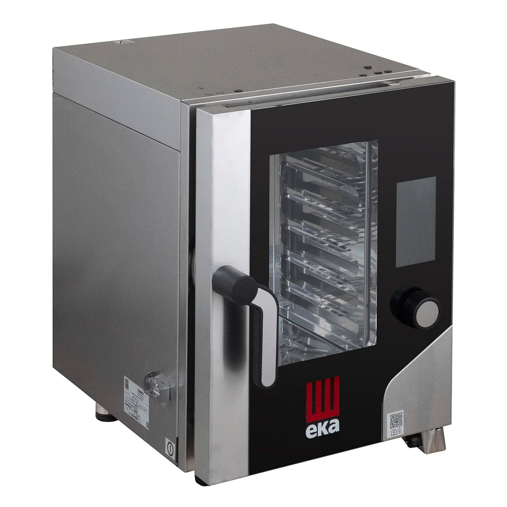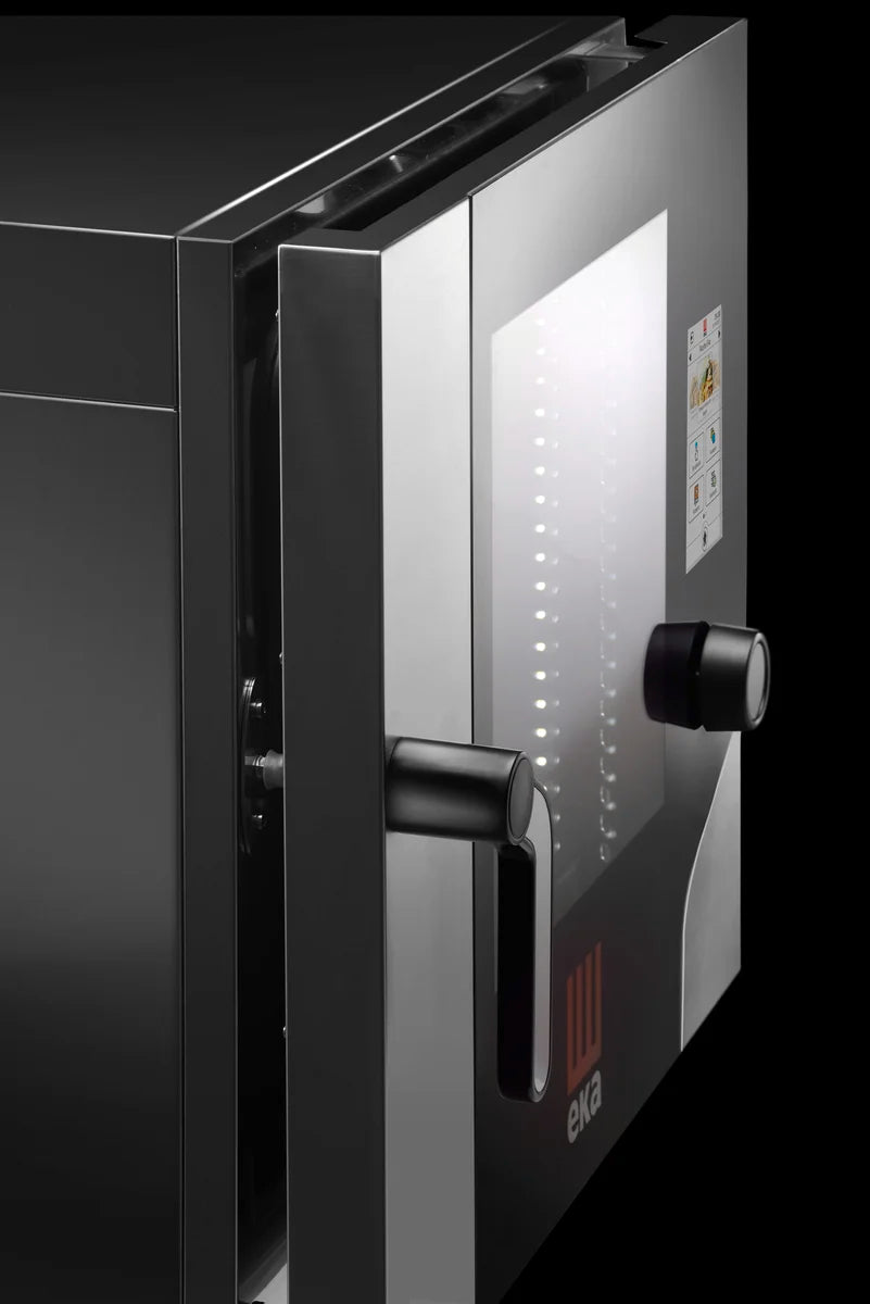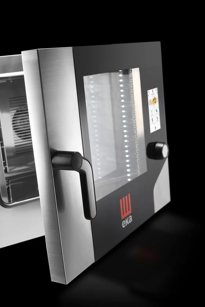 Les fours combinés de haute qualité de la marque Tecnoeka convainquent grâce à leur design robuste et raffiné à la fois ainsi que grâce à une technologie de pointe. L'utilisation est simple au moyen d'un écran tactile pratique et de 40 recettes pré-enregistrées. Le four dispose des systèmes brevetés Airflowlogic, Humilogic et Drylogic de Tecnoeka.