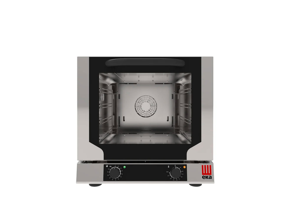 Grâce à son panneau de commande analogique, le four électrique à convection et à air pulsé est simple à utiliser et à régler. Le four dispose d'une chambre de cuisson en inox AISI 430 et d'une porte en verre transparent à circulation d'air. Pour des snacks savoureux que vos clients apprécieront.