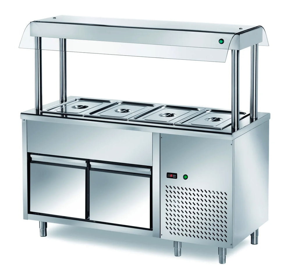 Ilot buffet PROFI froid avec deux tiroirs et écran de protection hygiénique 1500x700x1500 – 4x GN 1/1