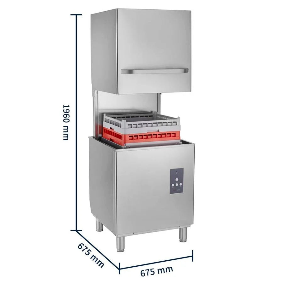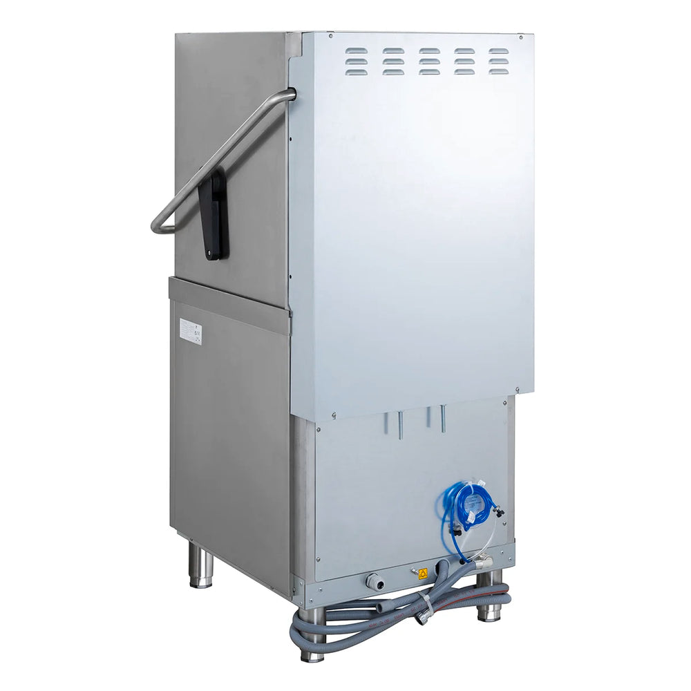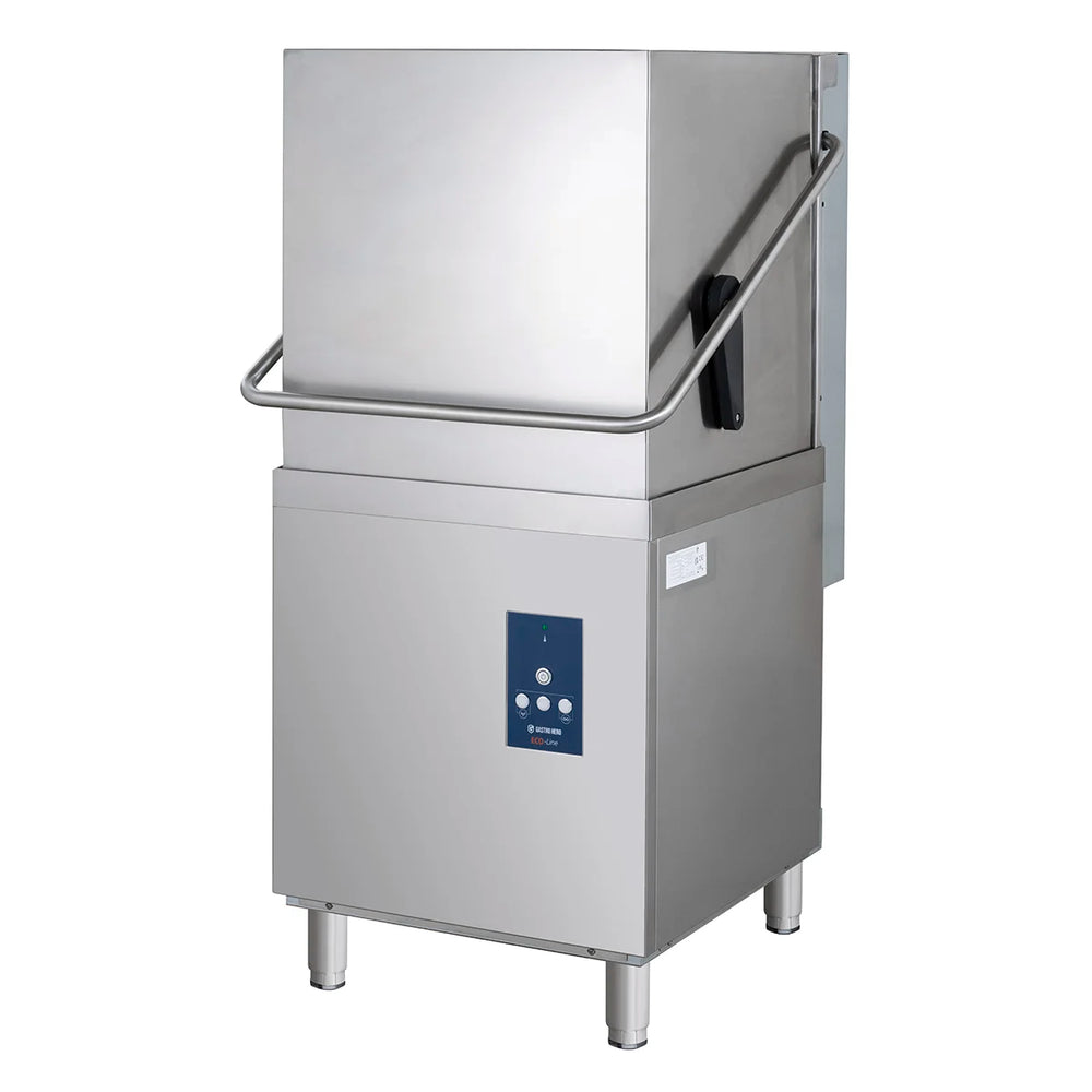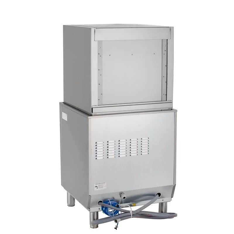 Lave-vaisselle à capot ECO avec dimensions de panier de 50x50 cm, équipé d'un doseur de détergent et de rinçage, avec pompe de vidange, fabriqué en Europe, 400 volts.