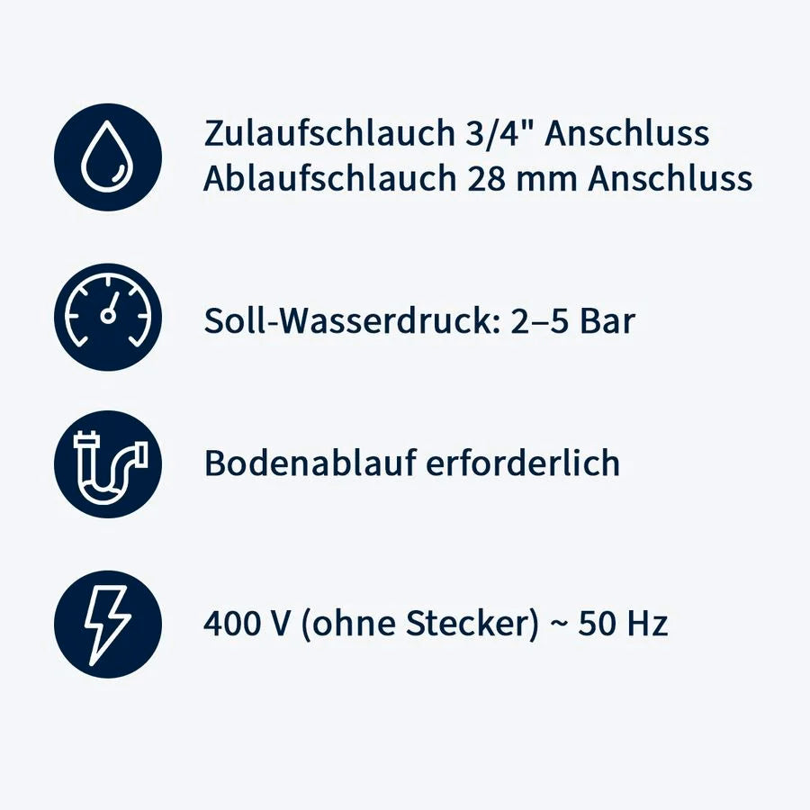 - Hygiène HACCP : rinçage garanti à 85 °C avec technologie Thermostop