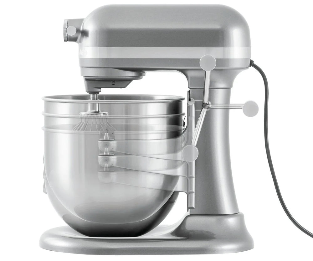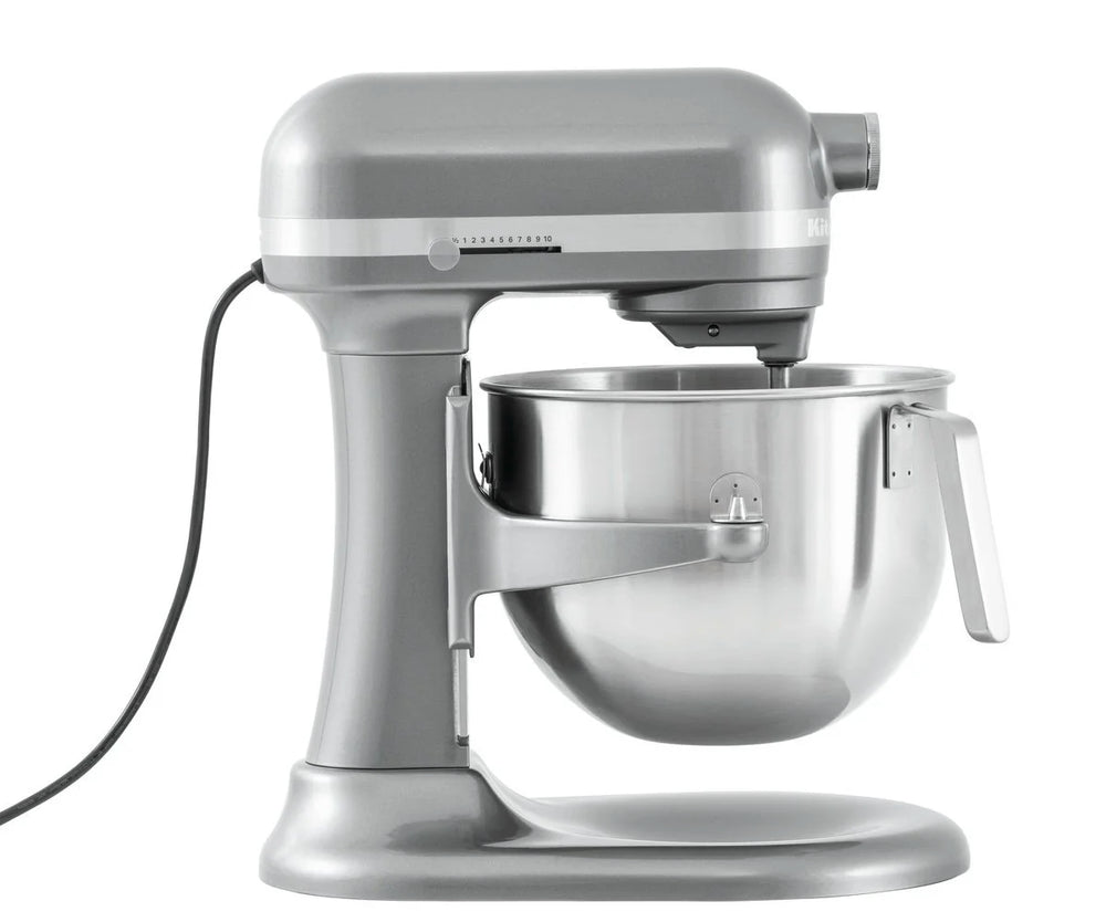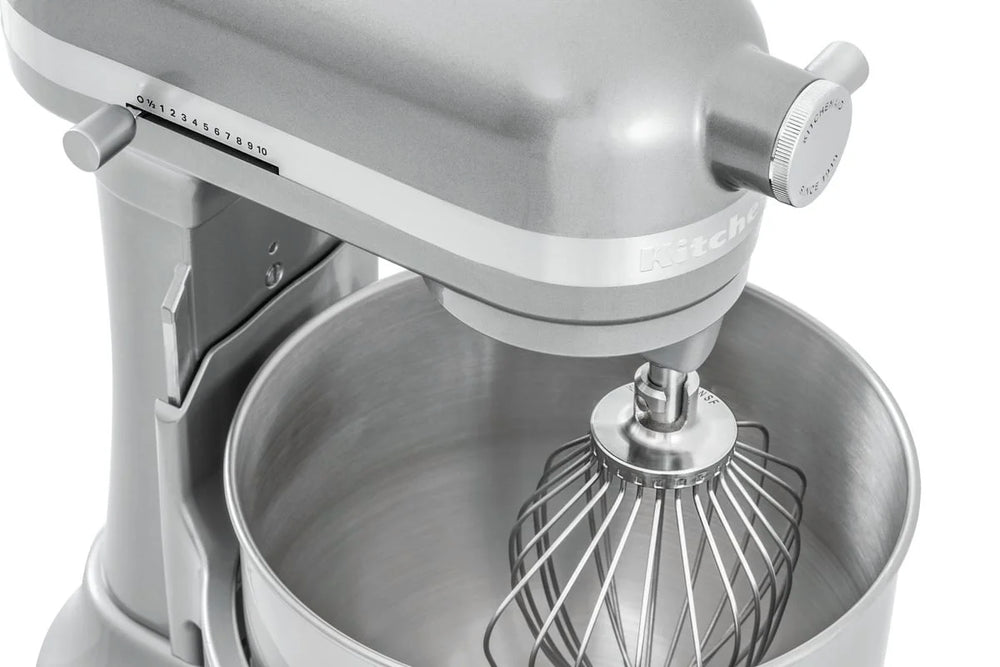 Travail précis grâce aux 11 vitesses et à la fonction démarrage progressif du puissant robot KitchenAid. Le bol en inox d'une capacité de 6,6 litres permet de pétrir la pâte ou de fouetter la crème sans effort. Très convivial : le robot de cuisine silencieux est équipé d'un levier de levage.