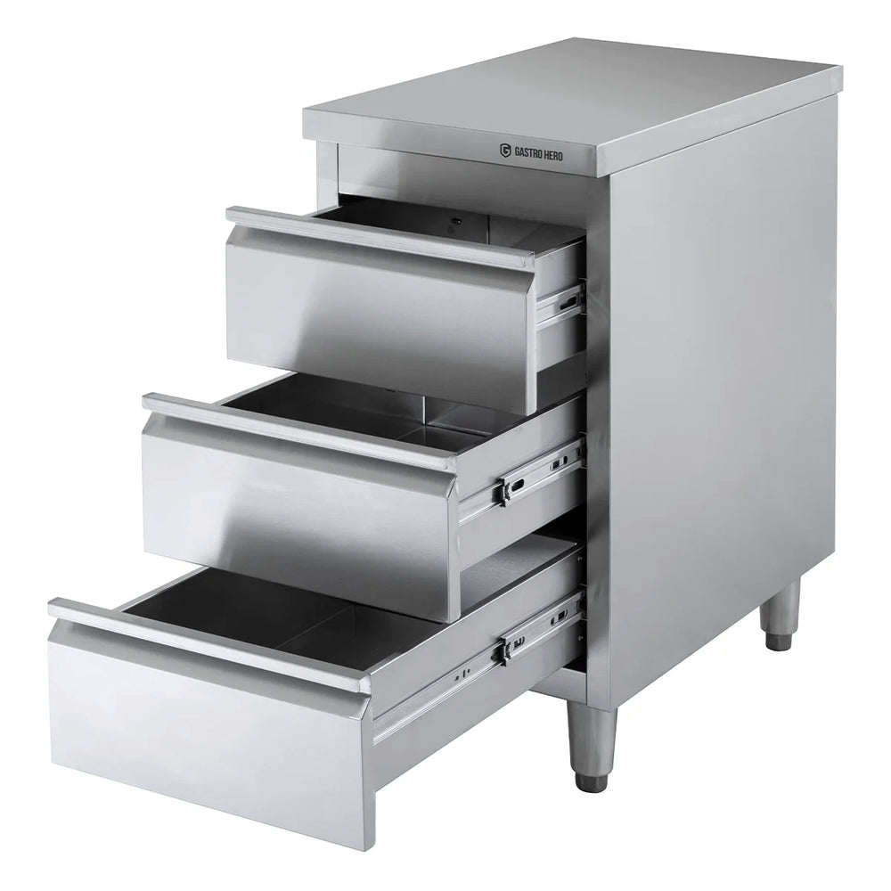 - Meuble à tiroirs 3 tiroirs en acier chromé-nickelé de haute qualité AISI 201