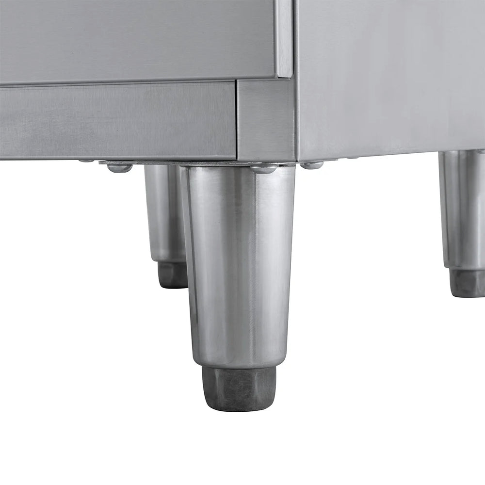 Les armoires à tiroirs BASIC sont entièrement fabriquées en inox de qualité supérieure et intégralement montées. Le renfort de plaque inférieure déperlant et doté d'une isolation acoustique assure à nos colonnes de tiroirs une grande robustesse et une longévité élevée.