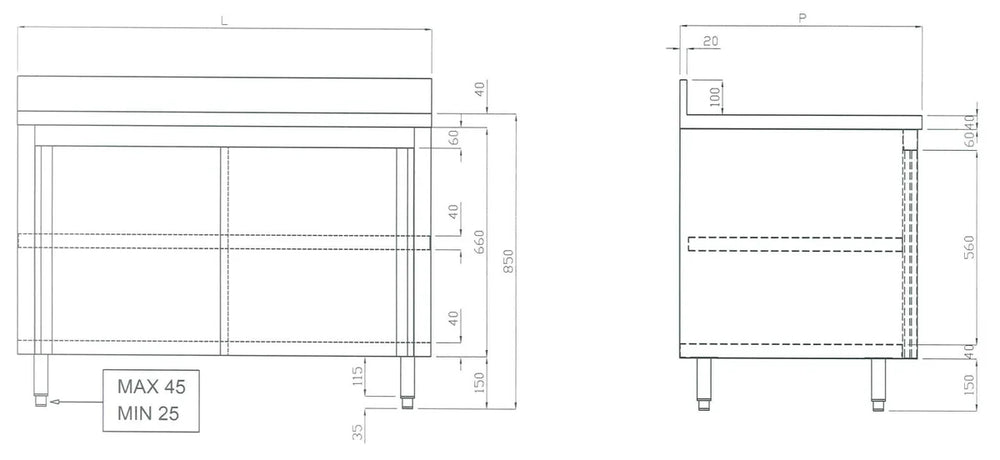 Les armoires de rangement de la gamme ECO sont entièrement en inox solidement soudé et sont équipés d´une étagère qui les rendent universels et idéales pour le stockage de vos produits.