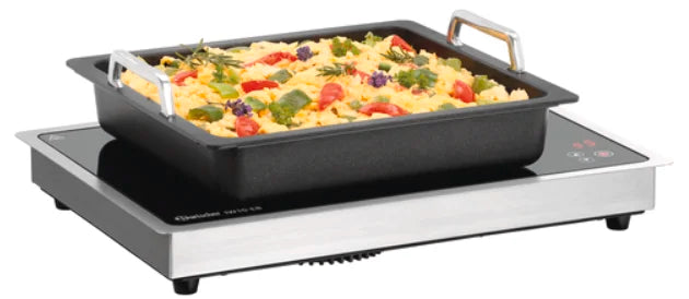 Dans la gastronomie, il arrive souvent que des plats soient déjà préparés mais qu'ils doivent être maintenus au chaud jusqu'à ce qu'ils soient servis. Ceci est possible en toute simplicité et en toute efficacité avec une plaque à induction de maintien de la température. Au contraire des techniques habituelles, une plaque à induction se réchauffe plus rapidement et avec fiabilité.