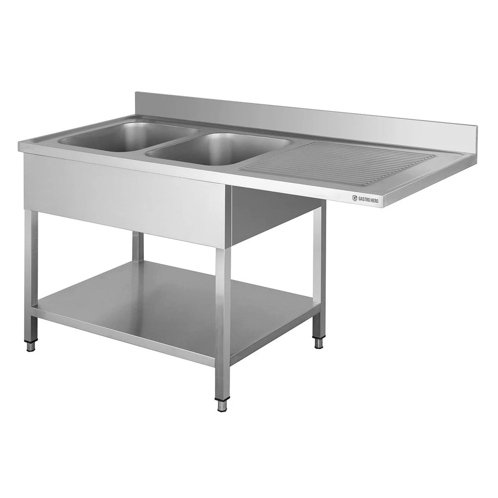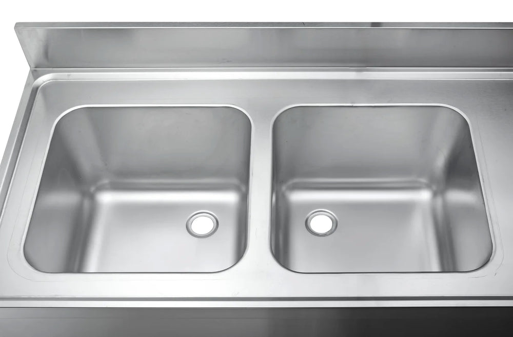 Plonge inox passage lave -vaisselle - 160 x 60 cm - 2 bacs à gauche - rebord 10 cm - BASIC