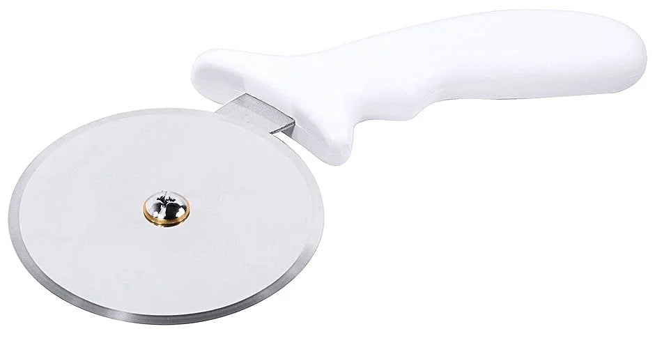 Cette roulette de coupe en acier à lame extra-large est biseautée des deux côtés et coupe sans effort n'importe quelle pizza, lasagne ou pain à l'ail.