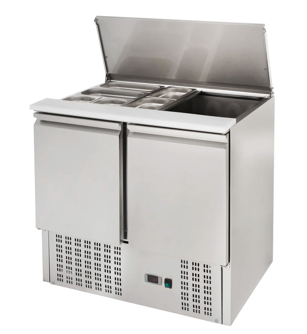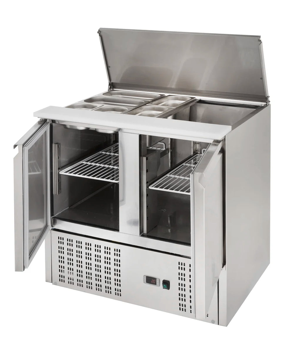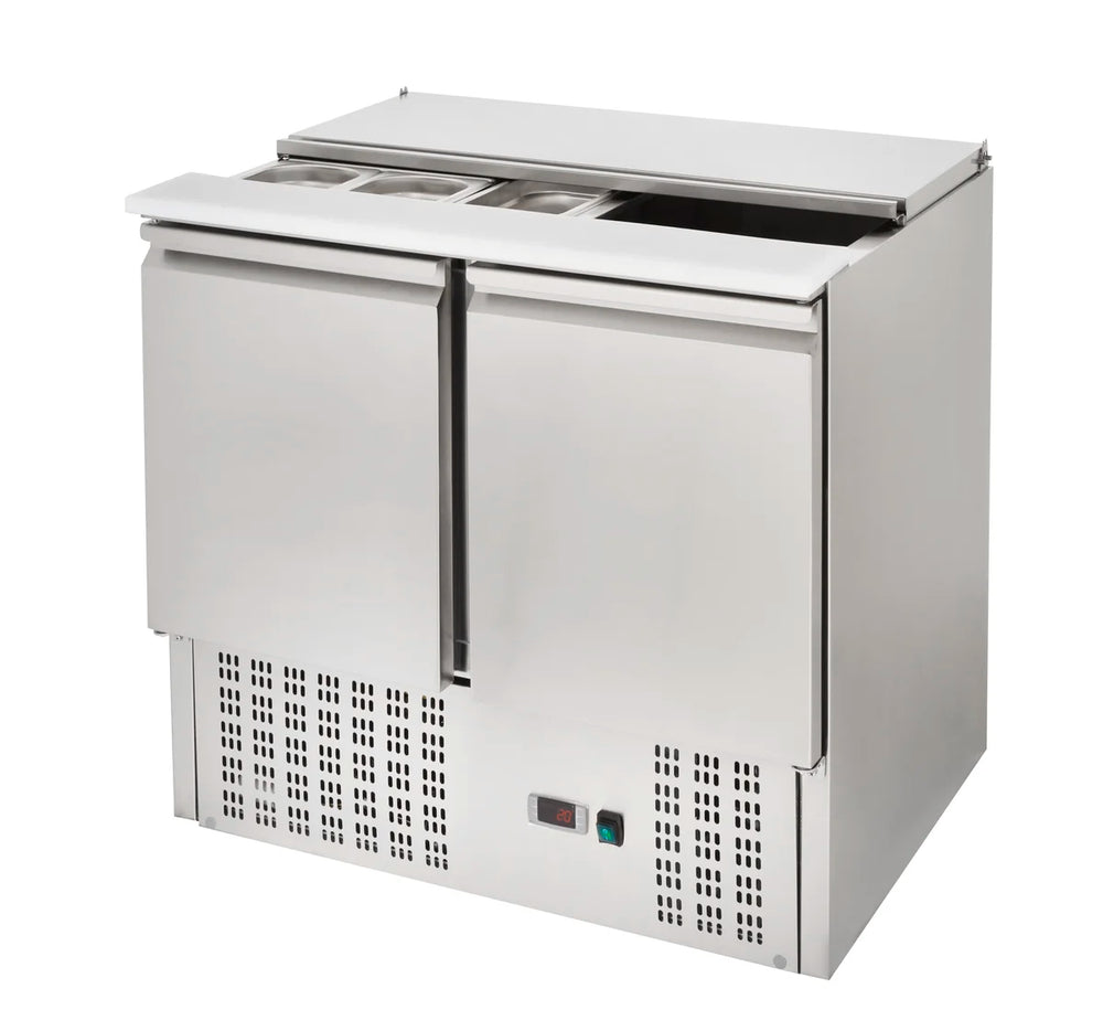 Saladette réfrigérée inox - 90 cm - 2 portes - bacs GN 1/1 - +2/+8 °C - ECO