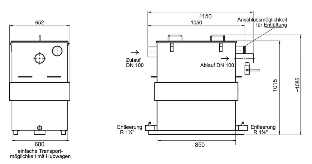 - Dimensions (l x P x H) : 1050 x 652 x 1085 mm