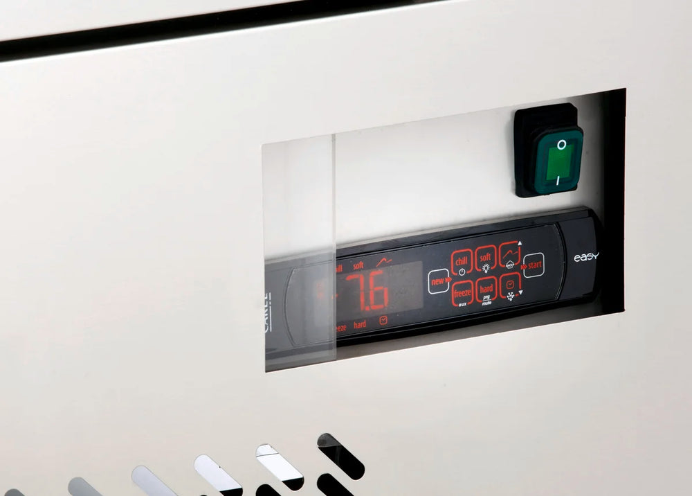- Deux cycles efficaces : +90 → +3 °C en 90 min ou +90 → −18 °C en 240 min, selon vos produits et votre planning.
