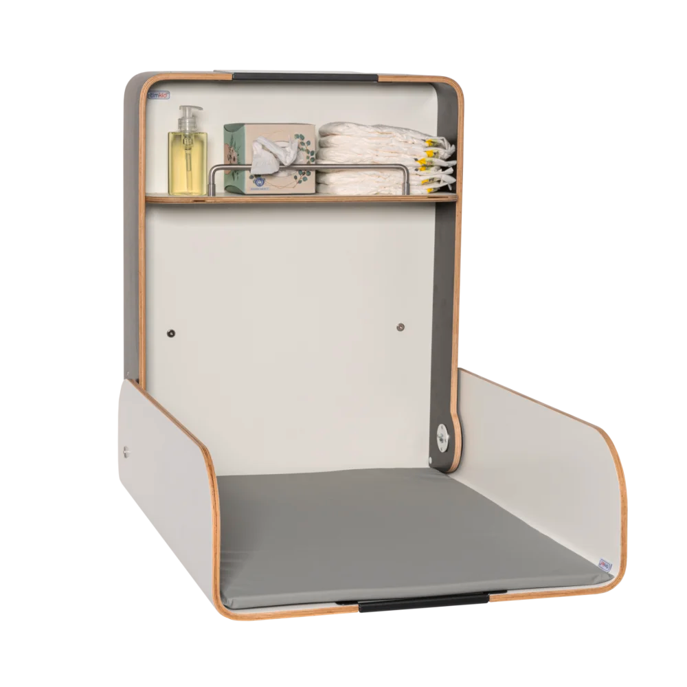 - Incl. matelas à langer en cuir synthétique gris (exempt de PVC, résistant à la graisse et à l'huile)