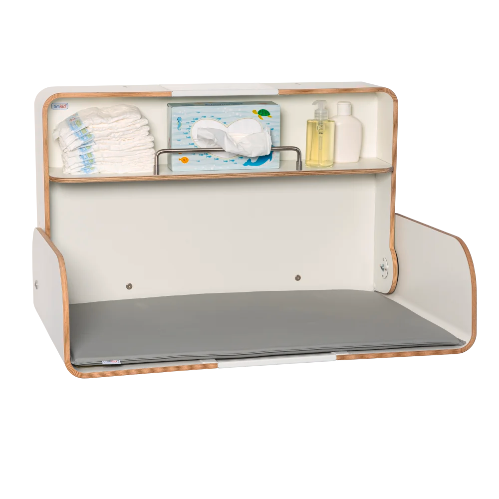 - Incl. matelas à langer en cuir synthétique gris (exempt de PVC, résistant à la graisse et à l'huile)