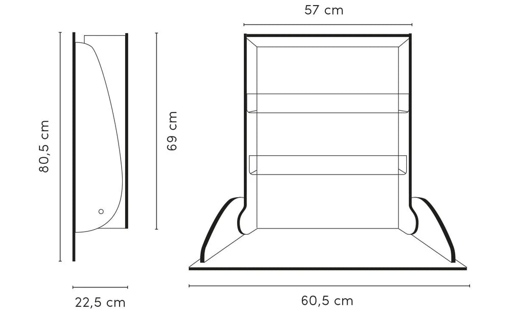 - Dimensions (l x P x H) : 605 x 805 x 225 mm