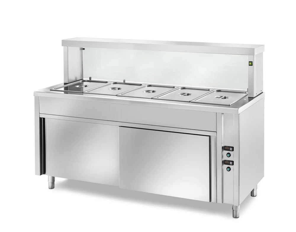 Table chauffante de libre-service PROFI ventilée avec portes coulissantes et structure en verre rectangulaire 2000x700x1300 – 5x GN1/1