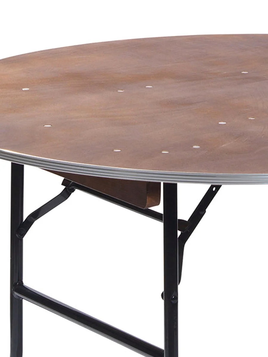 Cette table pliante ronde a un diamètre de 183 cm. Elle est doté d'un cadre noir avec un plateau en multiplex de 18 mm d'épaisseur. De plus, la table est équipée d'une bande de protection en aluminium qui lui assure une bonne protection.