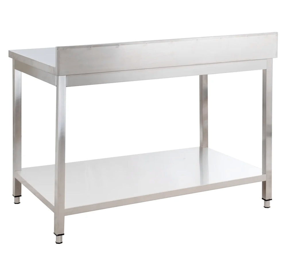 Table de travail Basic 14x7 en inox avec étagère inférieure et dosseret
