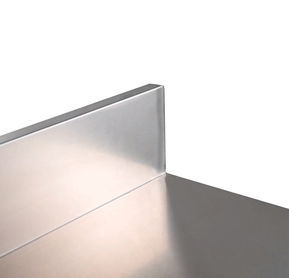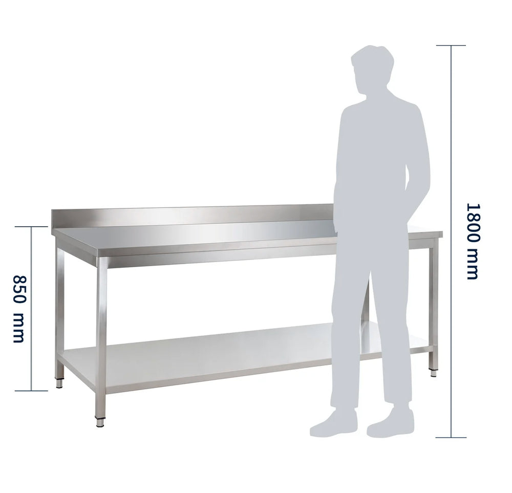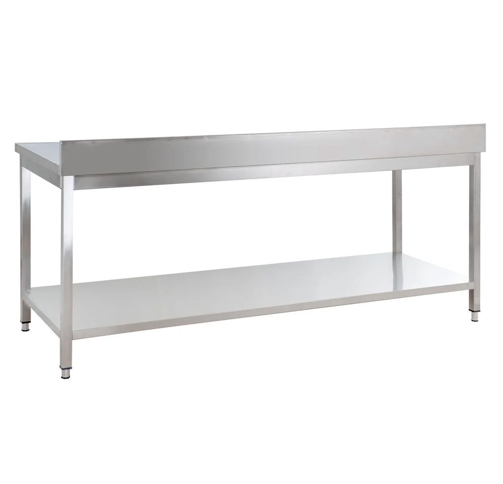 Table de travail en inox - 200 x 70 cm - sur étagère - rebord arrière 10 cm - BASIC