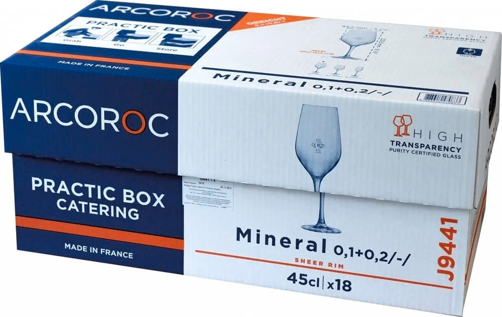 Verre à vin Arcoroc Mineral, 45 cl avec ligne de remplissage à 0,2 l, boîte pratique de 18 pièces