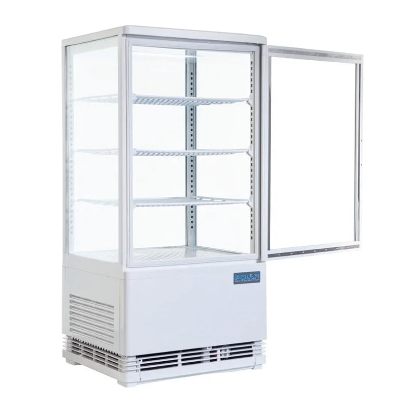 Nos vitrines réfrigérées 4 faces de la gamme Polar convainquent par leur présentation idéale des aliments et des boissons. Grâce à leur thermostat, elles peuvent réfrigérér vos denrées de manière éfficace et peu énergivore. De plus, elles aiguisent les achats spontanés dans le domaine du libre-service.